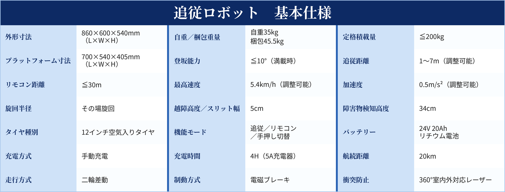 追従距離:1〜7m(調整可能)
